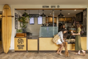 Guests on the go may start their days at Dogtown Coffee, a local-favorite café with organic micro-roast coffee and hearty breakfast burritos, wraps, and other to-go bites. A more leisurely morning could start at the Lobby Lounge, the hotel’s all-day social hub that’s also perfect for casual lunches, afternoon cocktails, or a coffee by the koi pond.